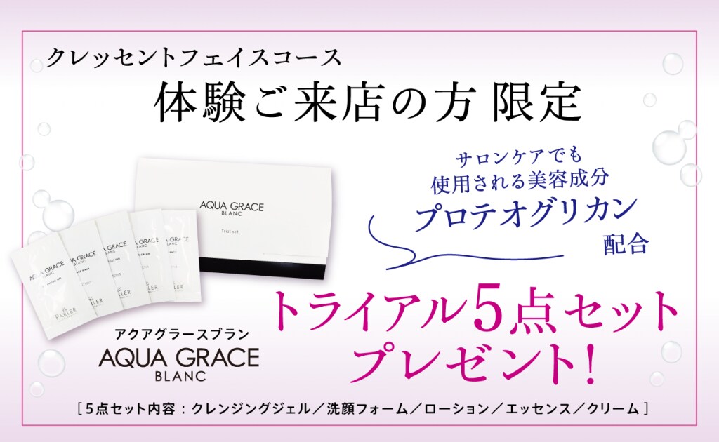 コース中で使用している化粧品のトライアル5点セットをプレゼントしています!