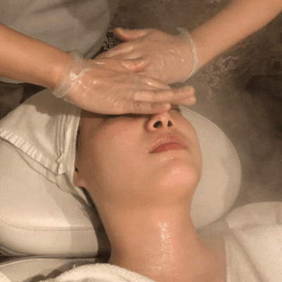 温かいスチームをかけながらラ・パルレ流のリフティングトリートメンでしっかりお顔をケア。
