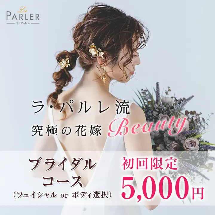 花婿様にも人生最高のお姿でハレの日を迎えていただくために。花婿の“最高”を引き出すラ・パルレの本格ブライダルケア。45年以上の実績に基づく経験と技術で一生残る日にふさわしい仕上がりへ。会員価格26,400円を初回5,000円でお試しいただけます。