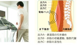 周波数が異なる3つの出力で、主に「赤筋」を刺激。健康の維持や増進に欠かせない有酸素運動と、脂肪の燃焼工場といわれている筋肉の強化が同時に行えます。そのうえ、寝ているだけで腹筋まで鍛えられます。