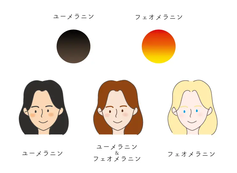 これらの反応の違いはメラニンの種類の違いによって起こります。