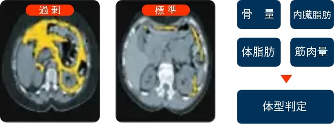 最先端のマシンで筋肉量や脂肪レベルを測定し、かくれ肥満度やボディバランスを内側からチェックします。