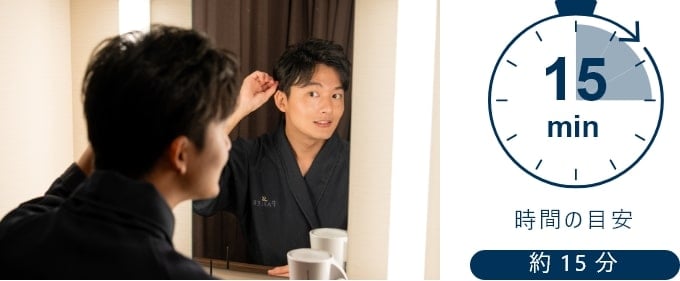 「初めてのメンズエステで、流れがよく分からない」という男性へ、体験コースの流れと所要時間の目安をご案内いたします。