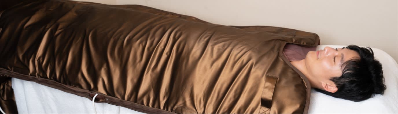ラッピングにより身体を内側から温めて代謝をUPさせると同時にパルレ流浸透型メソジェルの浸透を高めます。ヒートマットにより身体を温めほぐれやすい状態に整えます。