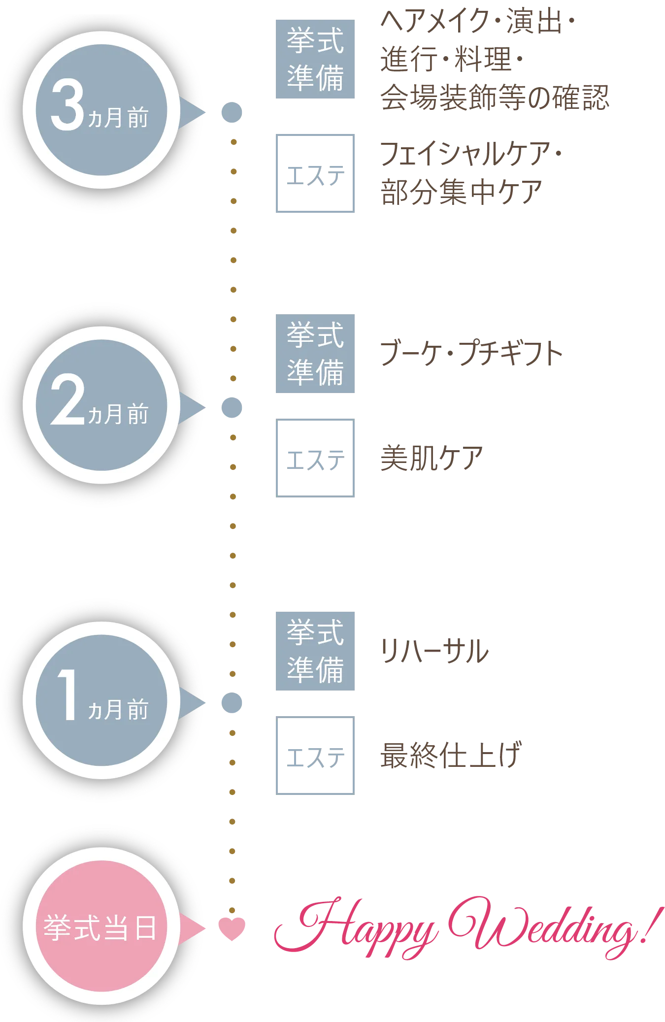エステティシャンがおススメする パーフェクトな新郎への トリートメントスケジュール