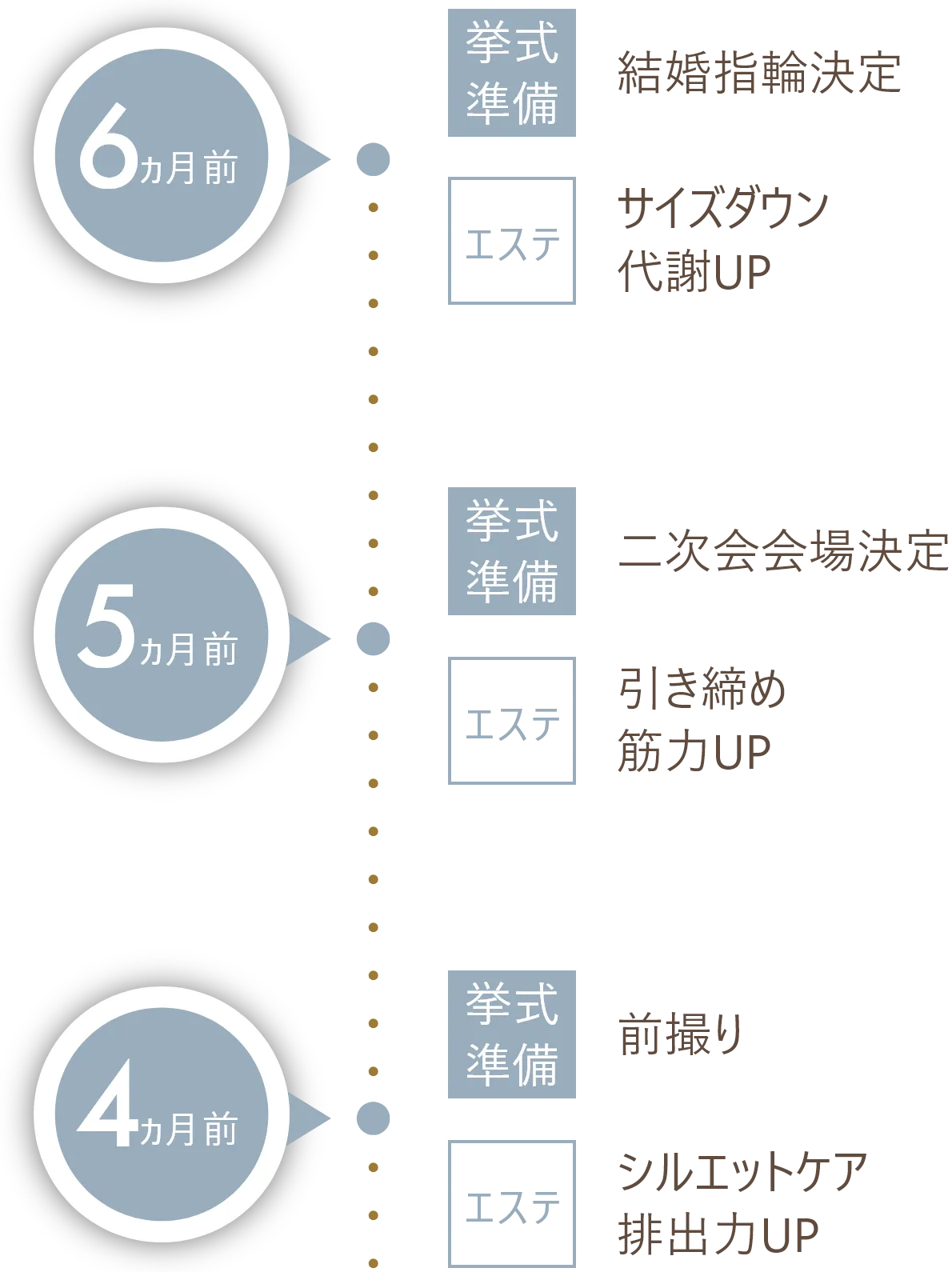 - Qブライダルエステには、どれくらい前から通うのが良いですか?