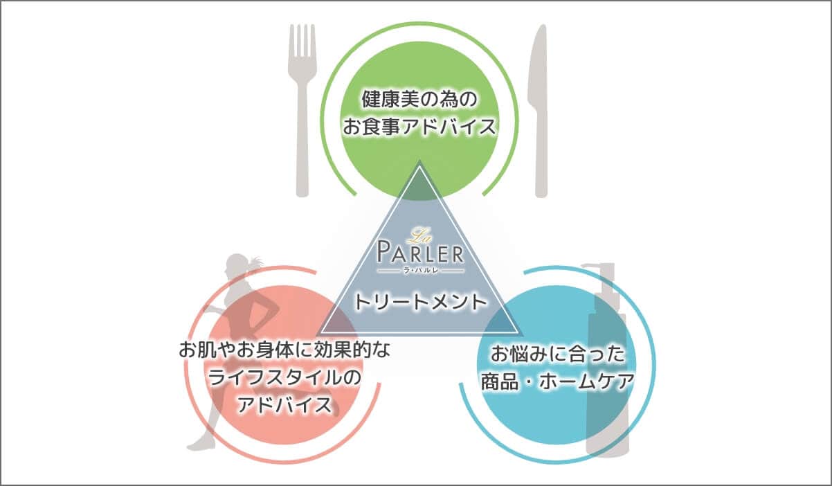 ラ・パルレはニキビケアから始まったエステサロンです。だからこそ、今できることをお肌やニキビの状態に合わせてお伝えしています。繰り返さないための原因の追求と改善に向けたサポートを全力でさせていただきます。