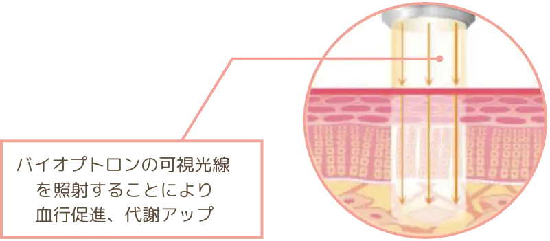 さらに、スイスの医療機器であるバイオプトロンが顔と足裏にwで働きかけ、新陳代謝の改善をサポート。