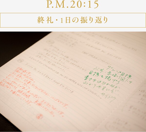 今日の業務を振り返り、反省点を確認。情報共有も完了。今日も、お疲れさまでした!