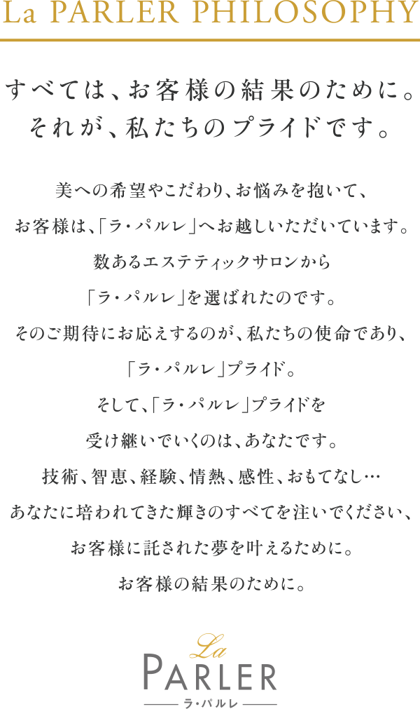 「ラ・パルレ」では、美を追求することを楽しめる、ビューティースペシャリストの育成に力を入れています。