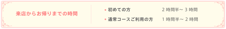 - 〇ブライダルコースご利用の方2時間~2時間半