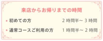 - 〇フェイシャルコースご利用の方1時間半~2時間
