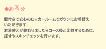 お着替えが終わりましたらコース後と比較するために、ボディチェックやスキンチェックを行います。